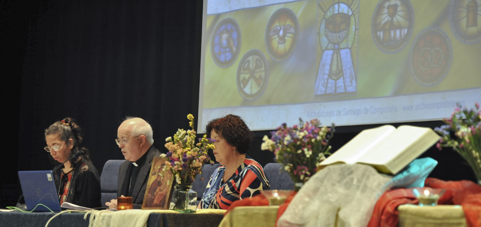 D. Elisardo Temperán fue el encargado de dar la conferencia de la mañana: “La Palabra de Dios y la liturgia”. Seguido a la conferencia tres testimonios vivenciales: Almudena, religiosa benedictina, habló de su experiencia de oración en el convento de San Pelayo de Santiago; La parroquia de Mª Auxiliadora de A Coruña, compartió con todos la actividad de animación litúrgica en las celebraciones eucarísticas que desarrollan en la parroquia y, la familia de José Antonio y Marta, de Santiago de Compostela, llenó de alegría y esperanza a toda la asamblea que escuchó cómo sí es posible vivir y transmitir la Fe de una manera coherente en familia, sí es posible rezar juntos y dar testimonio de ello. La Jornada terminó con una expresión comunitaria resaltando la necesidad de vivir con y la Palabra de Dios.