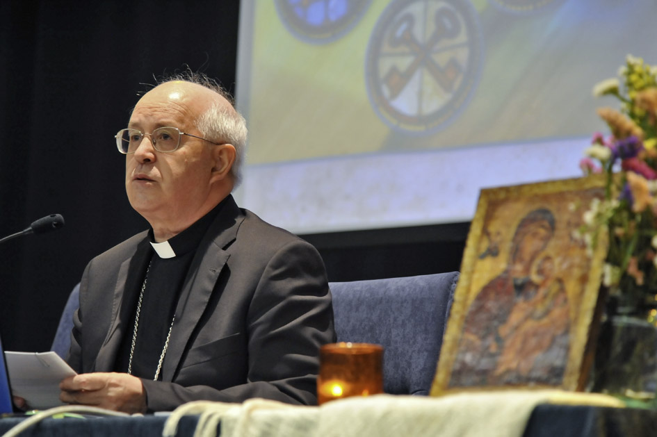 La Asamblea diocesana se celebró en el colegio de La Salle, en Santiago, congregando a sacerdotes, consagrados y laicos comprometidos de la Diócesis. Después de la oración de Laudes, D. Julián Barrio tuvo unas palabras de saludo a todos los diocesanos: “Mi deseo, es que la iglesia diocesana, en esta asamblea, se sienta motivada por la Palabra del Señor, que repite a todos y a cada uno: “haz memoria de Jesucristo resucitado de entre los muertos”. En su nombre llevemos a todos el anuncio de la conversión y del perdón de los pecados, pero seamos nosotros los primeros en dar testimonio de una vida de conversión y perdón”.