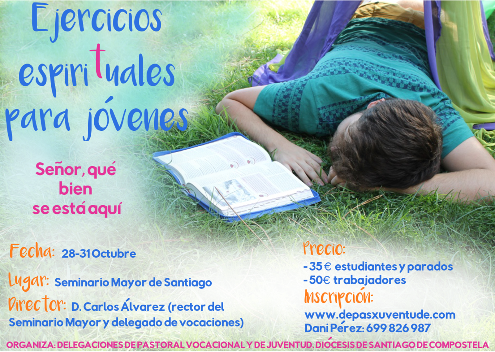 Los Ejercicios serán en el Seminario Mayor de Santiago de Compostela, del 28 al 31 de octubre. Los impartirá Don Carlos Álvarez, rector del Seminario Mayor y Delegado de Vocaciones.