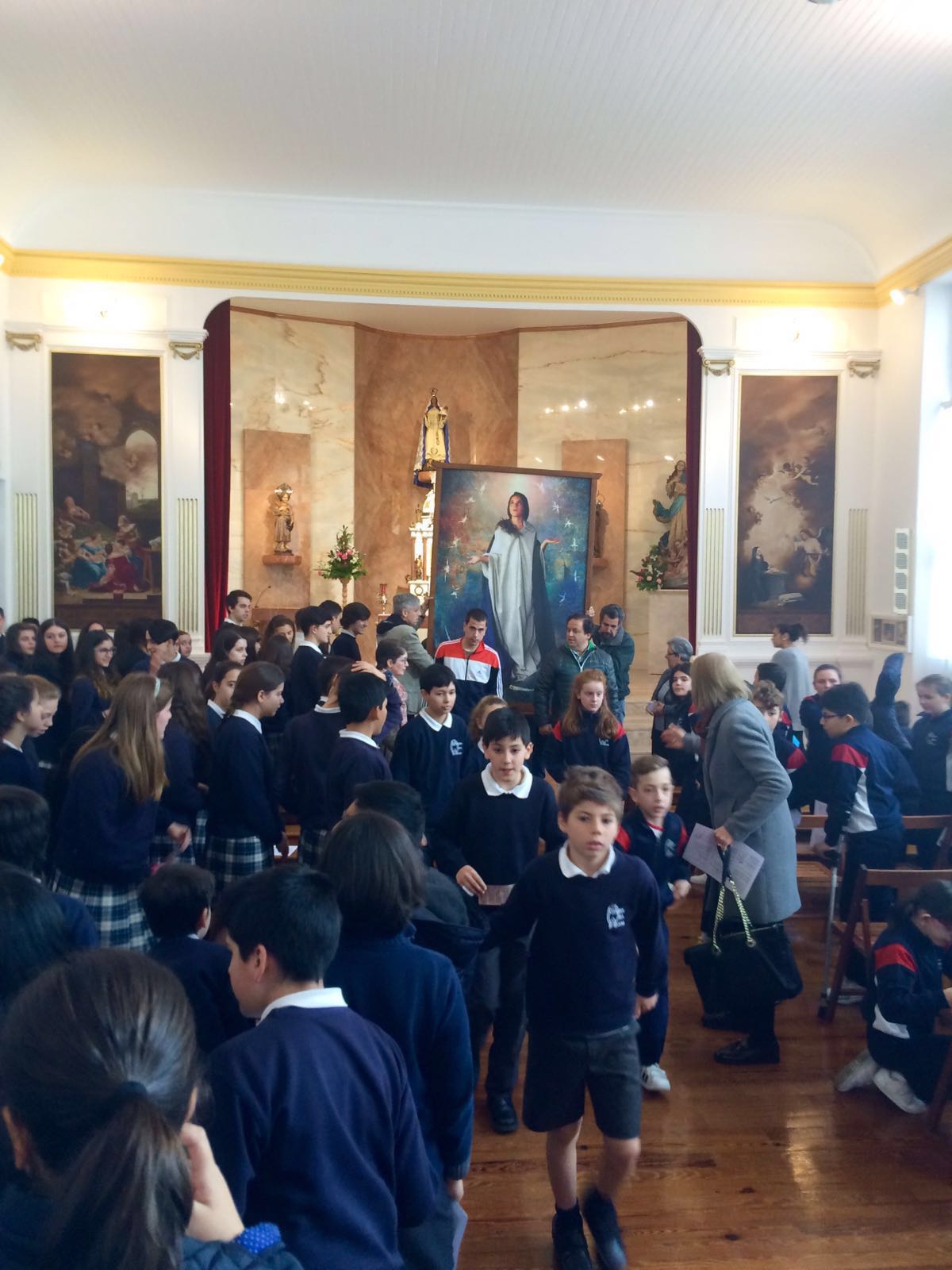 Fue, sin duda, una gran emoción contemplar la llegada del icono desde la entrada del Colegio hasta su llegada al altar mientras era arropada por cientos de niños y recibida con cantos de alabanza hacia nuestra Madre, así como la de todos aquellos que fueron pasando por el salón capilla durante las más de dos horas que permaneció junto a nosotros.