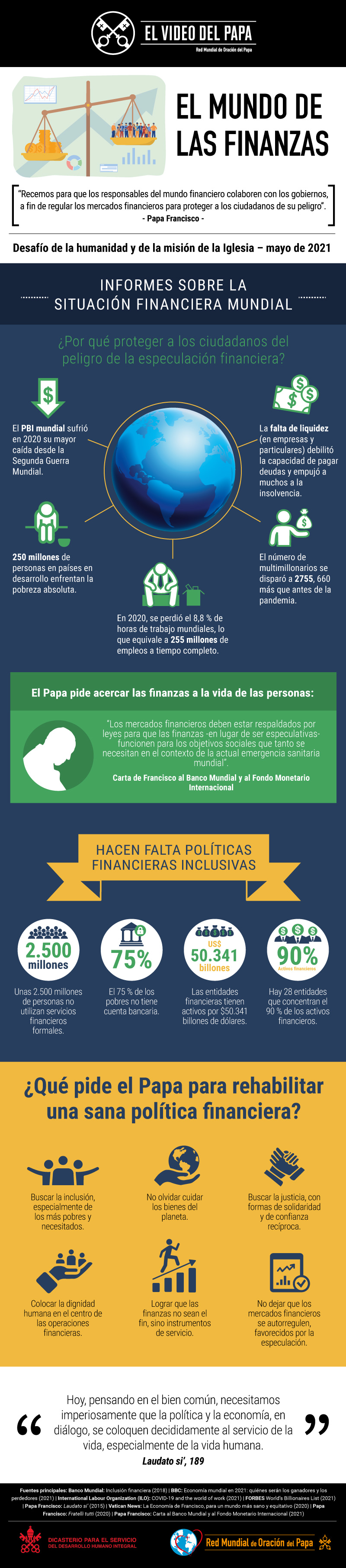 El Video del Papa de mayo, que difunde la intención de oración que Francisco confía a toda la Iglesia Católica a través de la Red Mundial de Oración del Papa, trata del mundo de las finanzas.