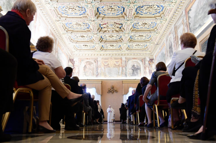 El Papa Francisco ha recibido este viernes en la Sala del Consistorio, a los miembros de la Fundación san Juan Pablo II, que este año celebra su trigésimo quinto aniversario.