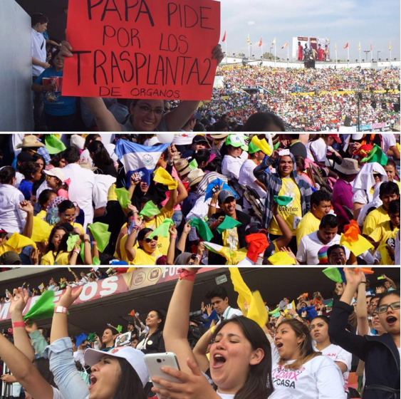 Buenas tardes, a ustedes, jóvenes de México que están aquí, que están mirando por televisión, que están escuchando, y quiero enviar un saludo y una bendición a los miles de jóvenes que, en la Arquidiócesis de Guadalajara, están reunidos en la Plaza San Juan Pablo II siguiendo lo que está pasando aquí y, como ellos, tantos otros; pero, me mandaron a avisar que eran miles y miles allí, ya reunidos, escuchando. Así que somos dos estadios, la Plaza Juan Pablo de Guadalajara y nosotros aquí, y después, tantos otros por todos lados.