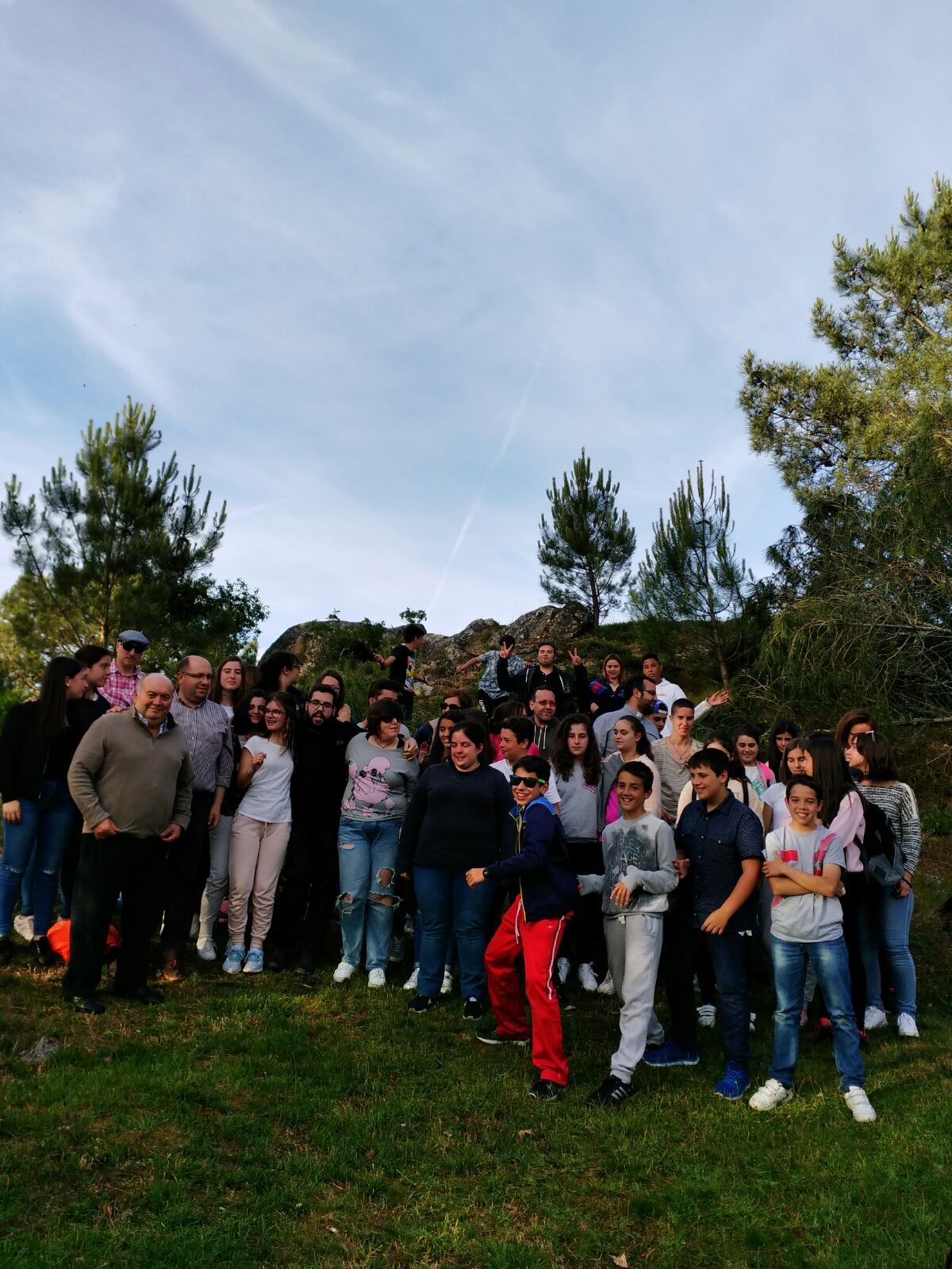Iniciamos con unas dinámicas de presentación, pues aunque algunos repiten de otros encuentros, otros venían por primera vez. Después realizamos una marcha desde la parroquia de San Miguel de Campo Lameiro hasta la capilla de San Antonino. Desde allí las vistas son preciosas, y es un sitio muy tranquilo y natural. Nos costó un poco la subida, todo hay que decirlo. Comimos, compartimos de lo que llevábamos, y participamos en una “yinkana natural”. Esto hace que convivas con otros jóvenes más o menos de tu edad, y la verdad que se disfruta mucho con poco.