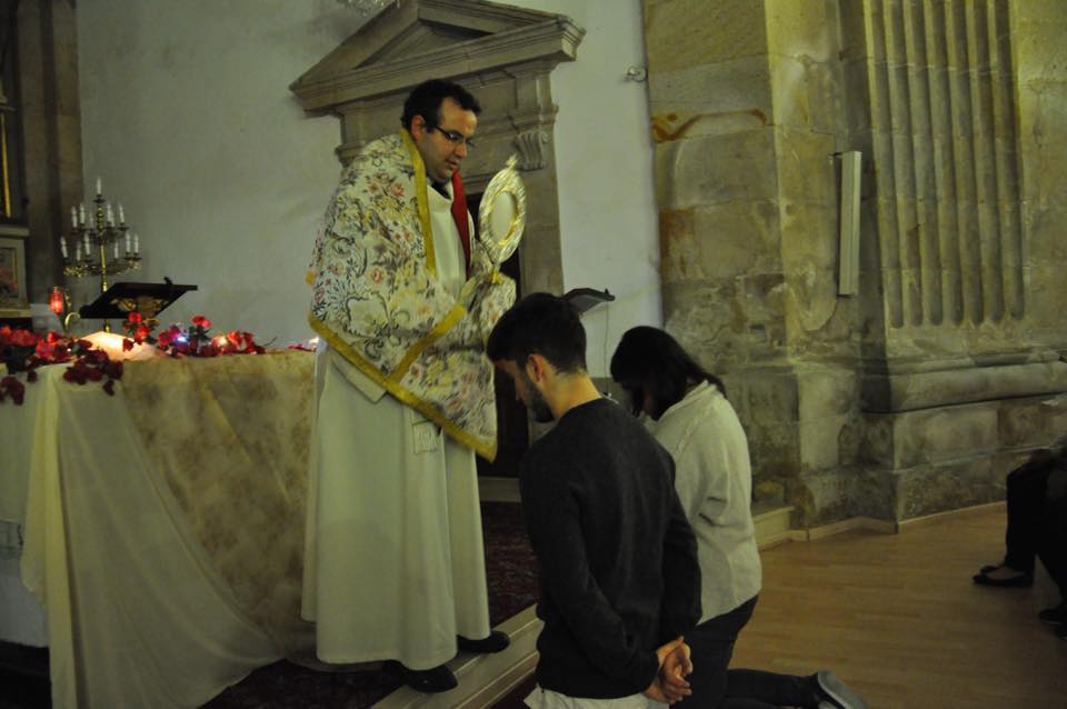el rosario rezado a las 17.30, y providentemente encontrábamos un sitio